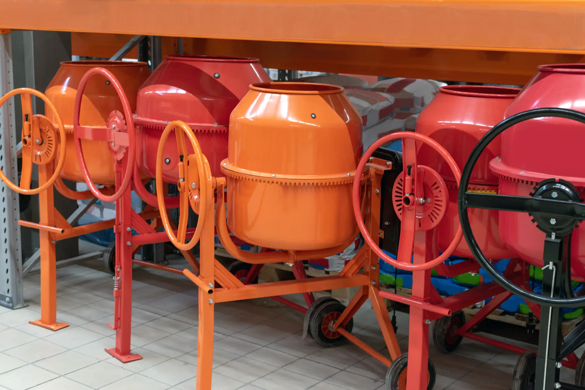 Accessibili in negozio numerose soluzioni con varie capacità di mescolamento, motore elettrico o a scoppio, struttura rinforzata, ruote robuste per lo spostamento e sistemi di sicurezza integrati.